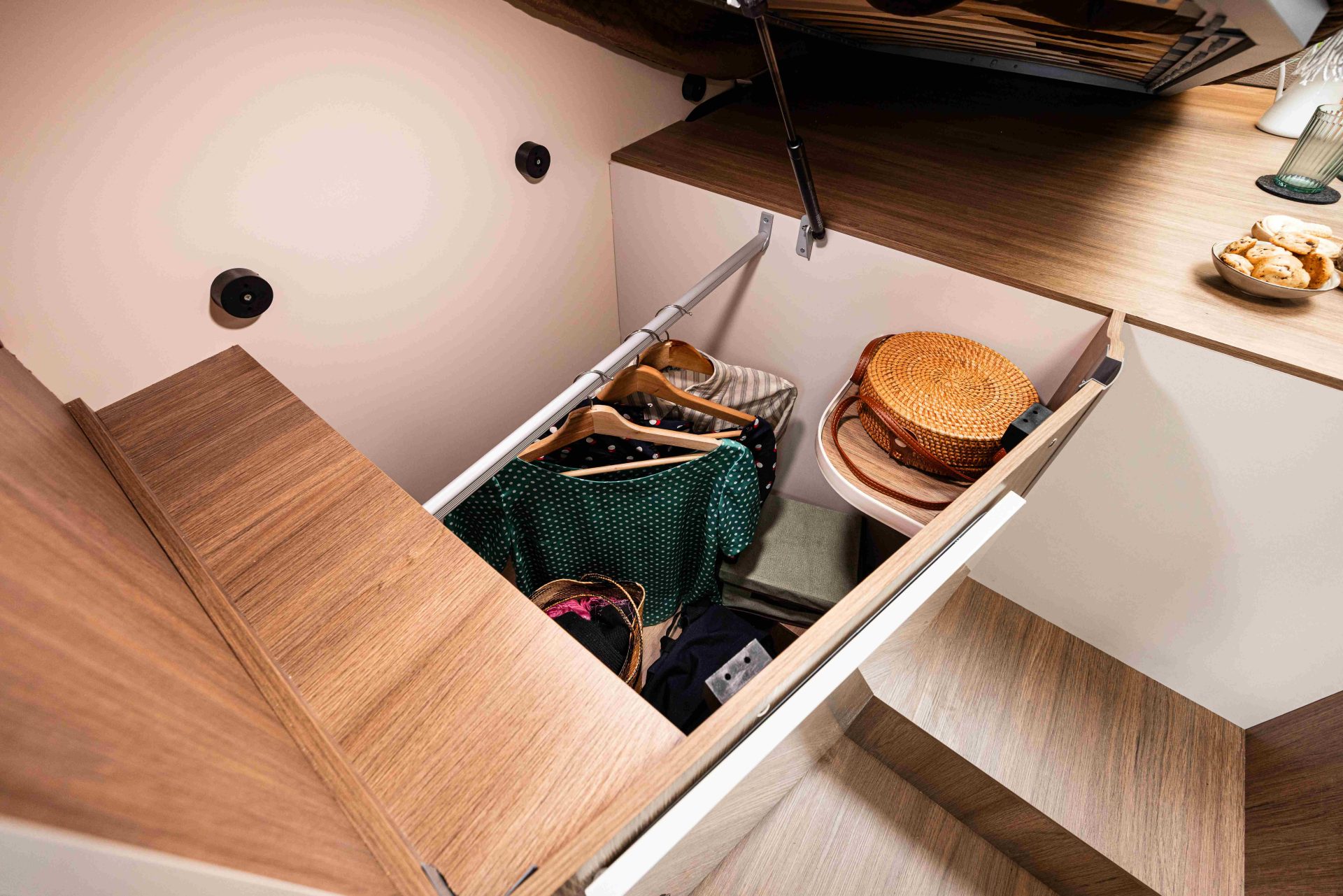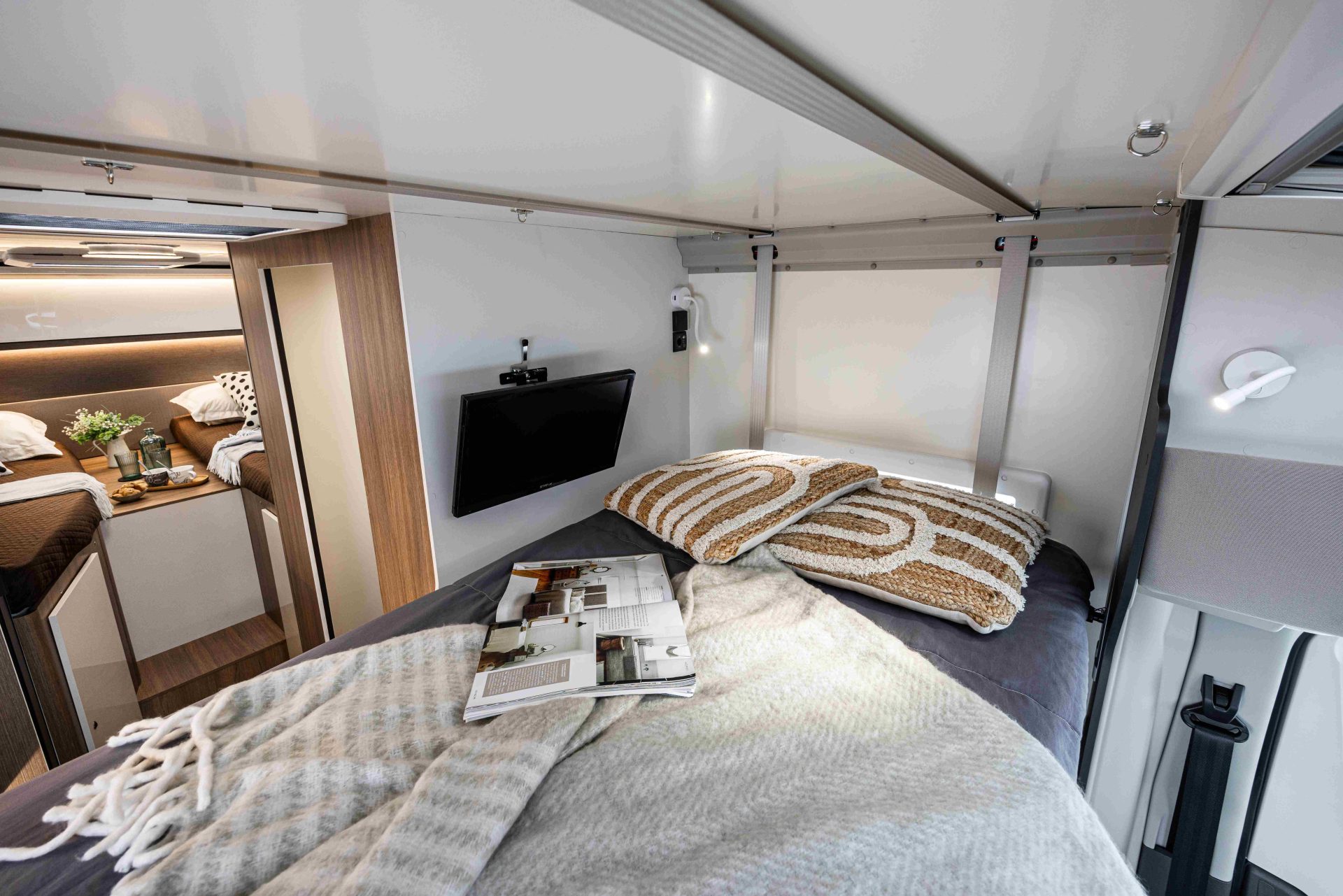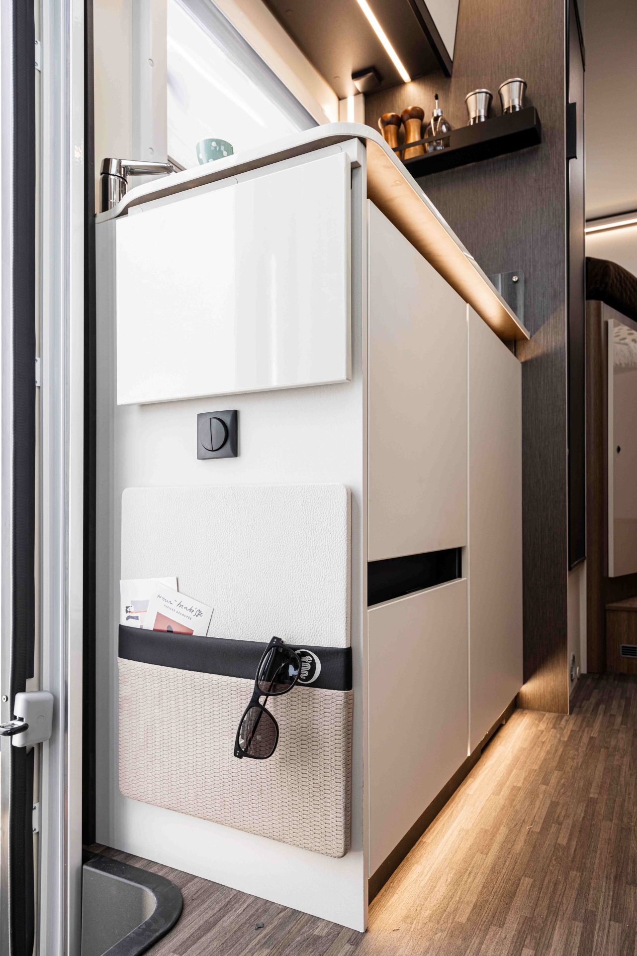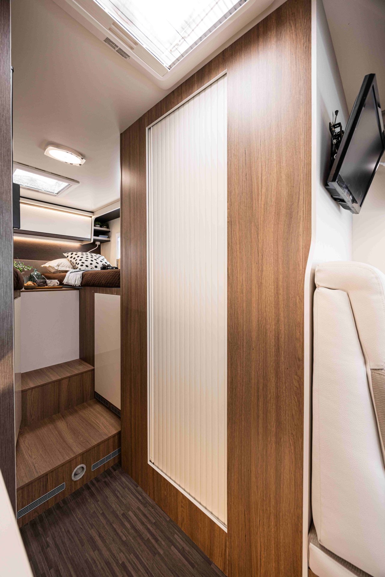 - Pack Compact ( Fari High Series con luci di svolta statiche, cassetto portaguanti con serratura- rivestimenti interni e plancia strumenti “Trend”, paraurti e modanatura in tinta, Porta XL con finestra e chiusura centralizzata, CP-Plus, Sktroof, coprilavello, braccio TV, sedili abbinati alla tappezzeria, pannello fotovoltatio 200 W con MPPT, oscuranti plissettati.