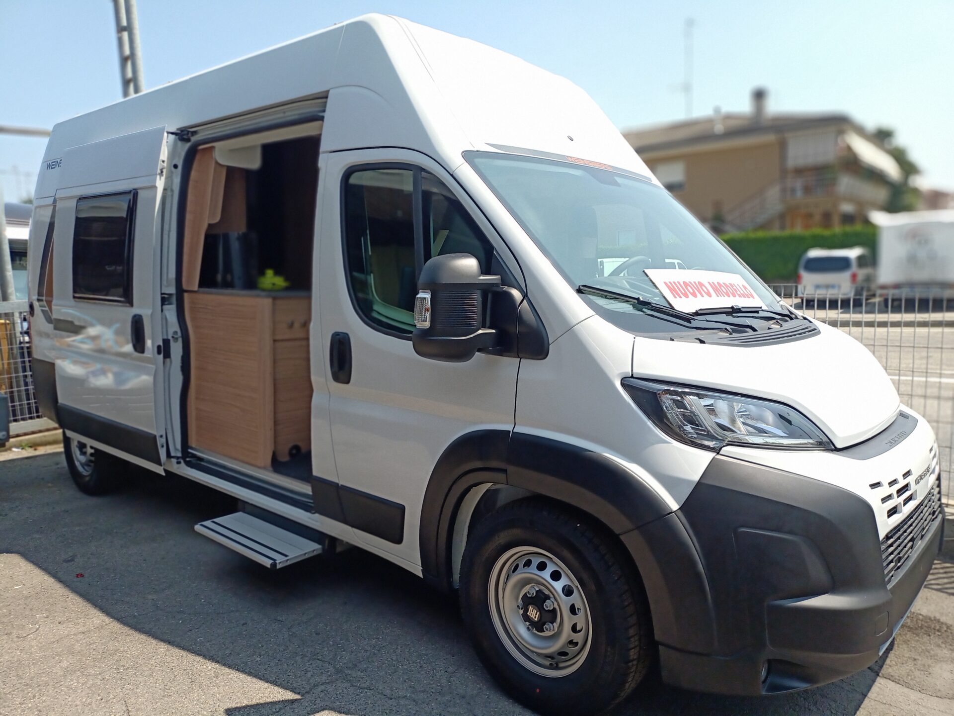Furgonato di nuova immatricolazione, telaio Fiat Ducato 2.2cc, 140 cv, omologato 4 posti viaggio, 4 posti letto, lunghezza 5,99 m, altezza 2,82m, larghezza 2.05 m, dotato di riscaldamento Truma Combi 4 gas , frigorifero Vitrifrigo a compressore, Wc a cassetta.